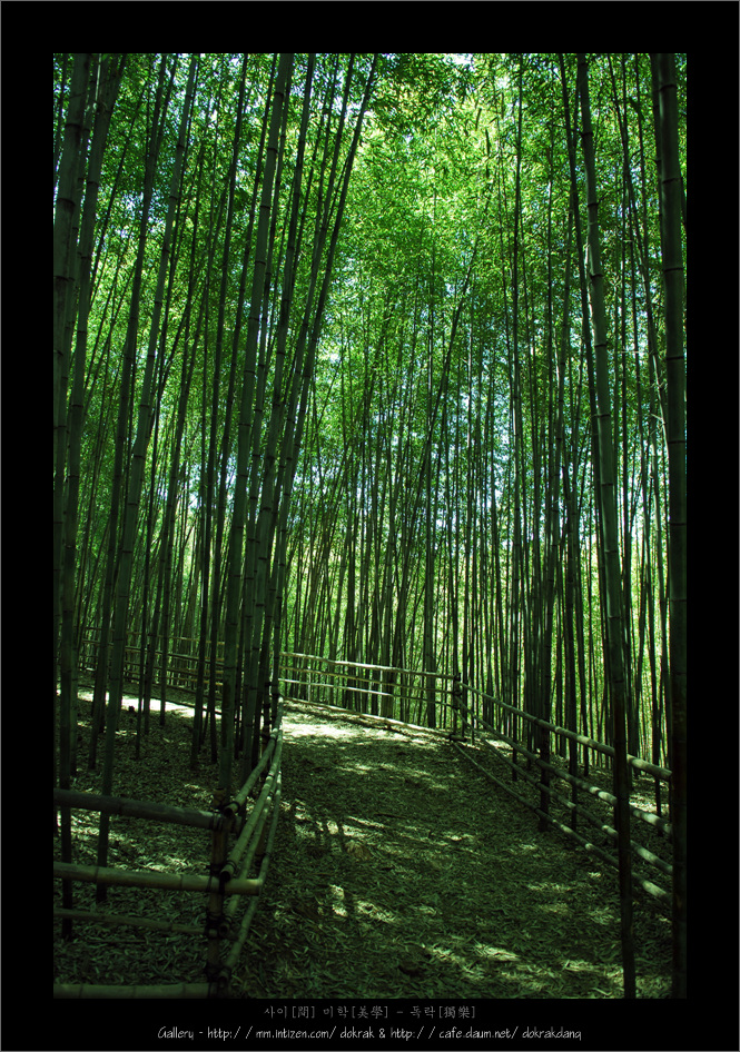 잔잔하게 다가오는 신선한 대나무의 향기와, 시원하게 뻗어올라간 대나무 한그루 한그루를 보고 있노라면... 답답하게 쌓여 있던 마음의 짐들이 어느새인가 모두 날아가 이내 평온함에 기분이 차분해 짐을 느낍니다.