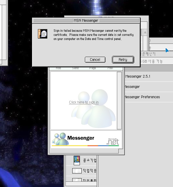제가 메신저를 깔았는데요 로긴할려고 하니까 자꾸만 요렇게 뜹니다..