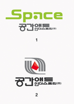 '간'자에 공간이 조금 어색... 인더스트리의 '인'자에 ㅇ 을 더 키우고 ㄴ 을 ㅣ 쪽으로 약간 옮기거나...'공'자의 ㅇ 이 고자의 굵기보다 가늘어 어색...간자의 ㄴ 역시 가늚. 가로획과 세로획의 굵기를 서로 각각 동일하게 하는건 레터링의 기본. 아래것이 더 낫네요.^^