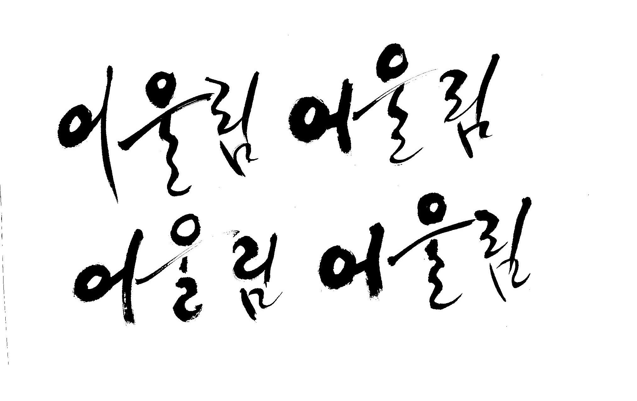 켈리 부탁좀 드릴께요~ 김철호 일반 0 11354 2009.01.14 10:49 > > > > > 책표지에 나갈 글씨로 '어울림'이란 켈리를 쓰고싶은데요... > > 도와주세요~ > > > 좋은 글이라서... > 긴....습작시간이 있었지만 > 결과물이 왜소하네요 > 유용하게 쓰시길... >