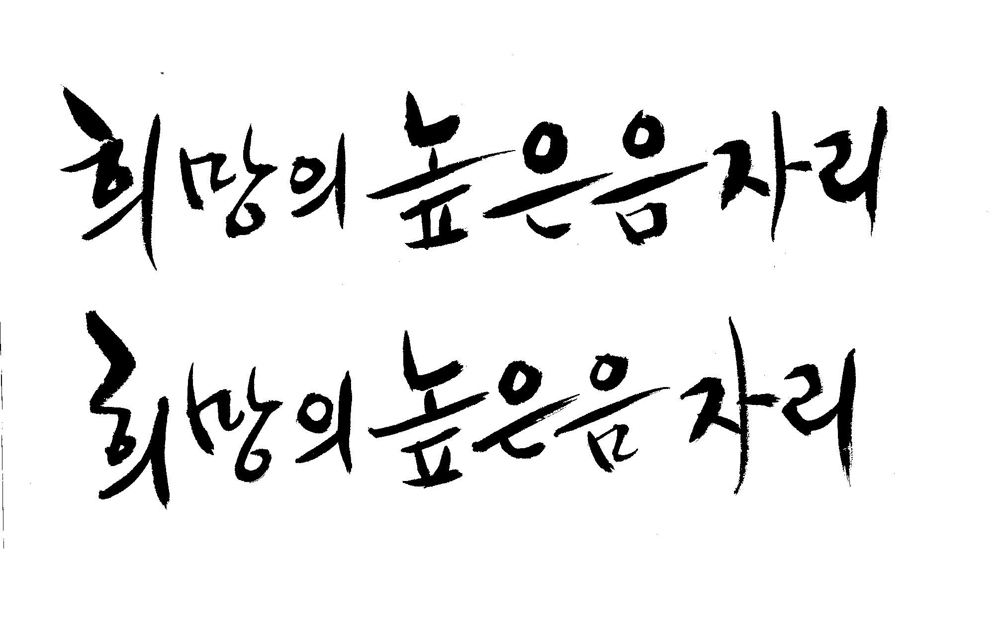 저도 캘리좀부탁이요 ^^;; 김철호 일반 0 6576 2009.01.14 10:59 > > > > > 희망의 높은음자리 > > > > 감사합니다 ^^ 꼭부탁드려욧 ㅎㅎㅎ > > > > 좋은 글이라서 신경썼는데 > 만족할 만큼 않나왔네요.. > 유용하게 쓰시길... >