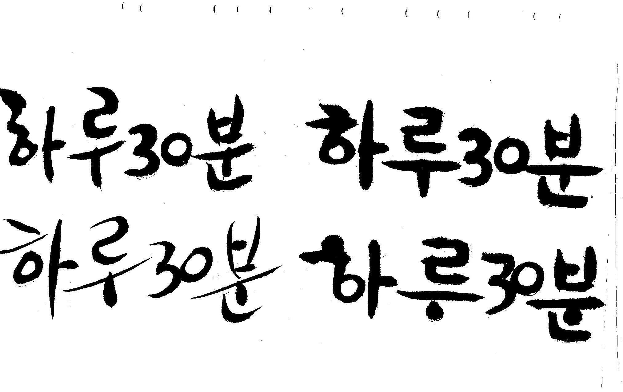 캘리부탁드려요 김철호 일반 0 6526 2008.12.31 13:43 > > 하루30분 <------- 이걸 캘리로 부탁드립니다 > 희망찬 새해 되세요... 스캔이 삐딱하게 되어 손좀 보셔야겠네요..